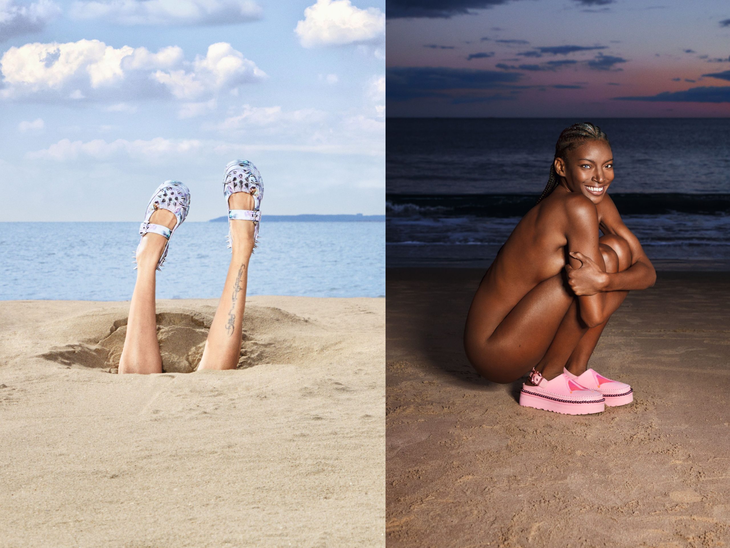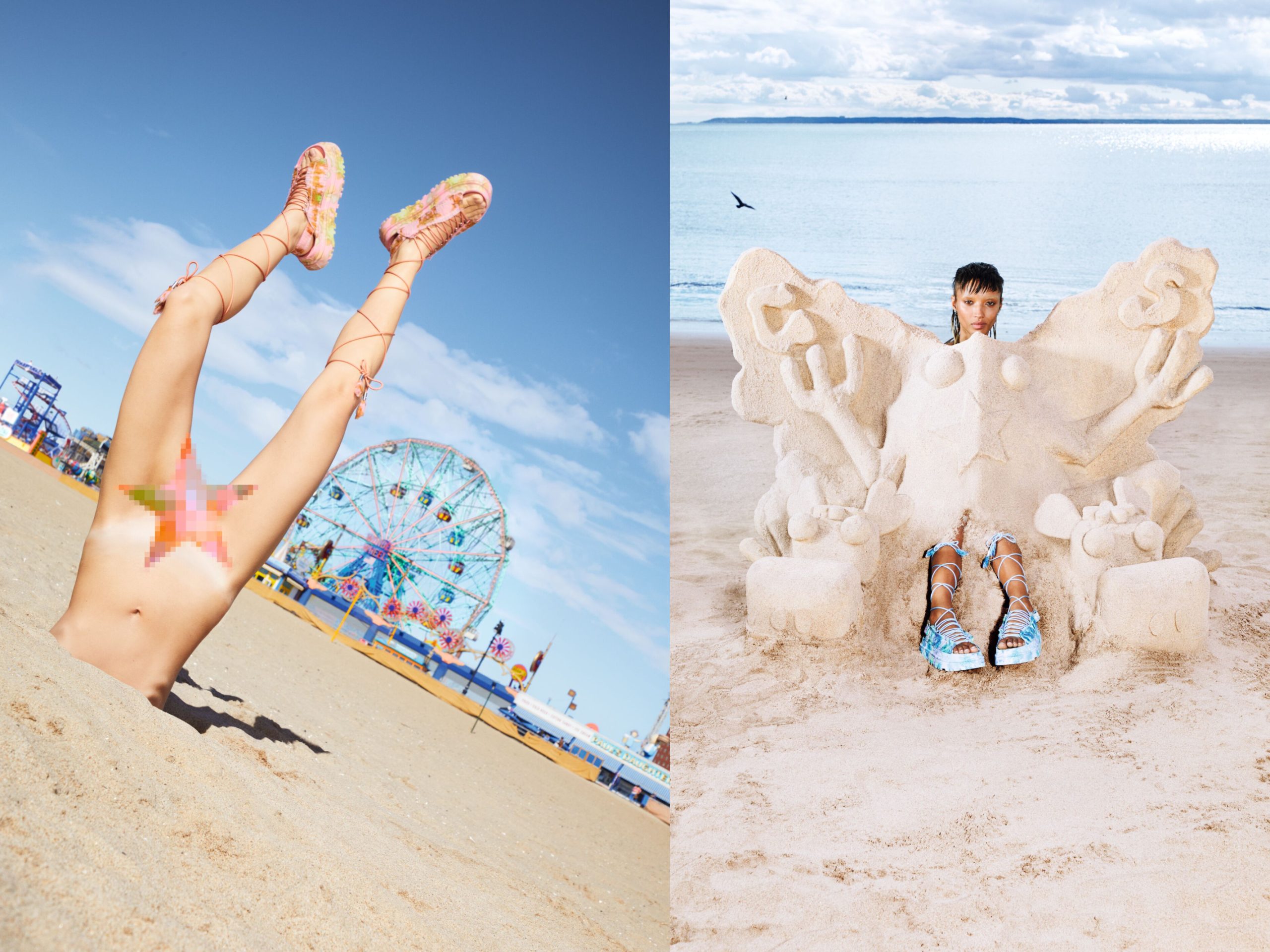 A sottolineare l’animo gioco e spensierato di Collina Strada è la campagna pubblicitaria realizzata per il lancio. Negli scatti le modelle Georgia Palmer, Sara Hiromi e Taylor Larzo sono immortalate racchiuse in sculture di sabbia. Il tono giocoso di sfoggiare le calzature con teste e piedi che emergono attinge all’estetica stravagante per cui Collina Strada è nota.