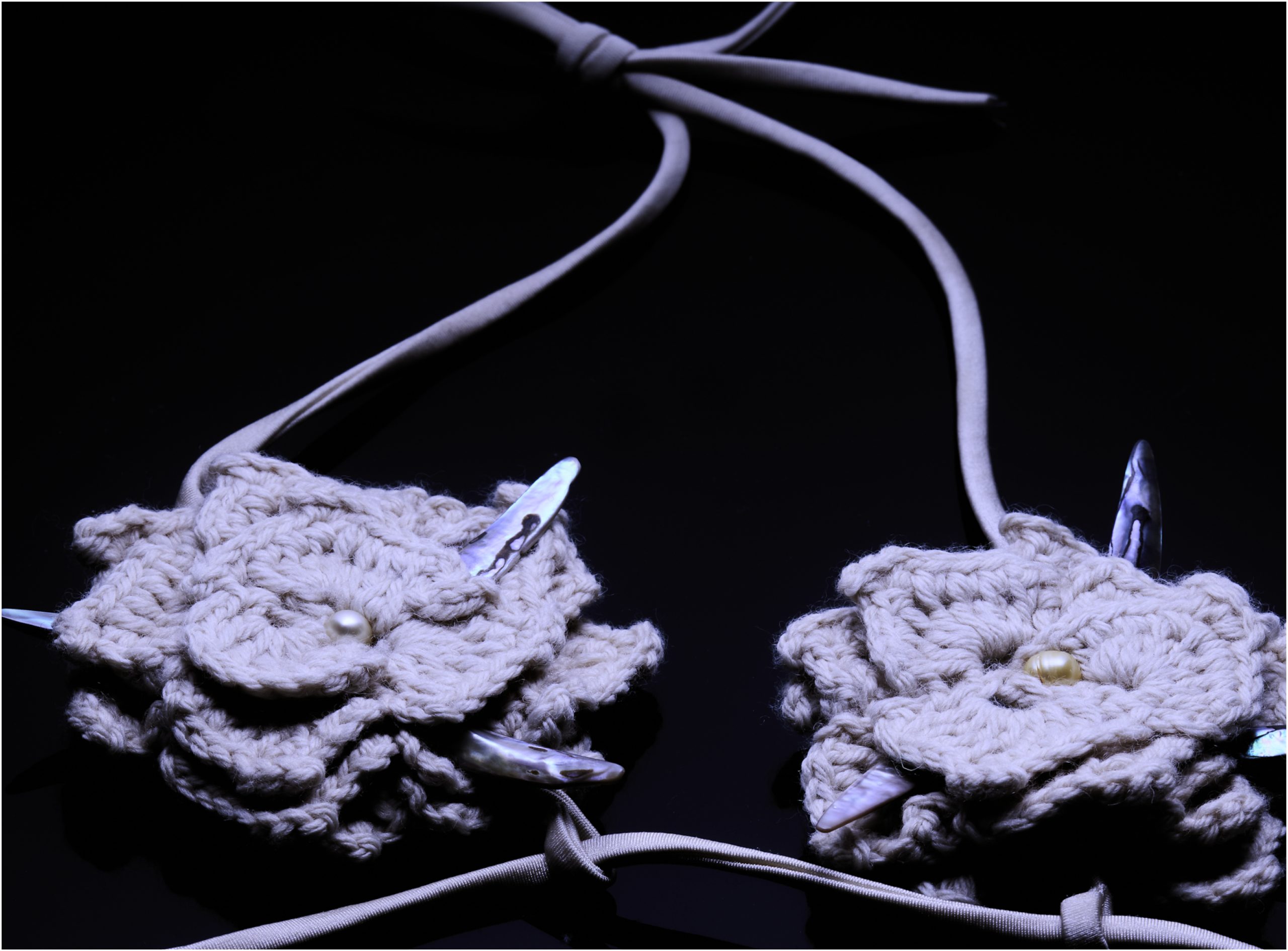 Ogni collezione è una storia d’amore: capi di lingerie e accessori diventano gli strumenti narrativi capaci di aggiungere un nuovo racconto al corpo di chi li indossa. L’ultima collezione creata da Isabella, “Vulcano”, ne è un perfetto esempio. I capi sono pensati per permettere a chi li indossa di costruire la propria storia. Materiali preziosi – pizzi pregiati, lana, tinture naturali, conchiglie, cristalli – e la collaborazione con artigiani calabresi locali sono gli ingredienti chiave dell’elisir d’amore che incanta la collezione.