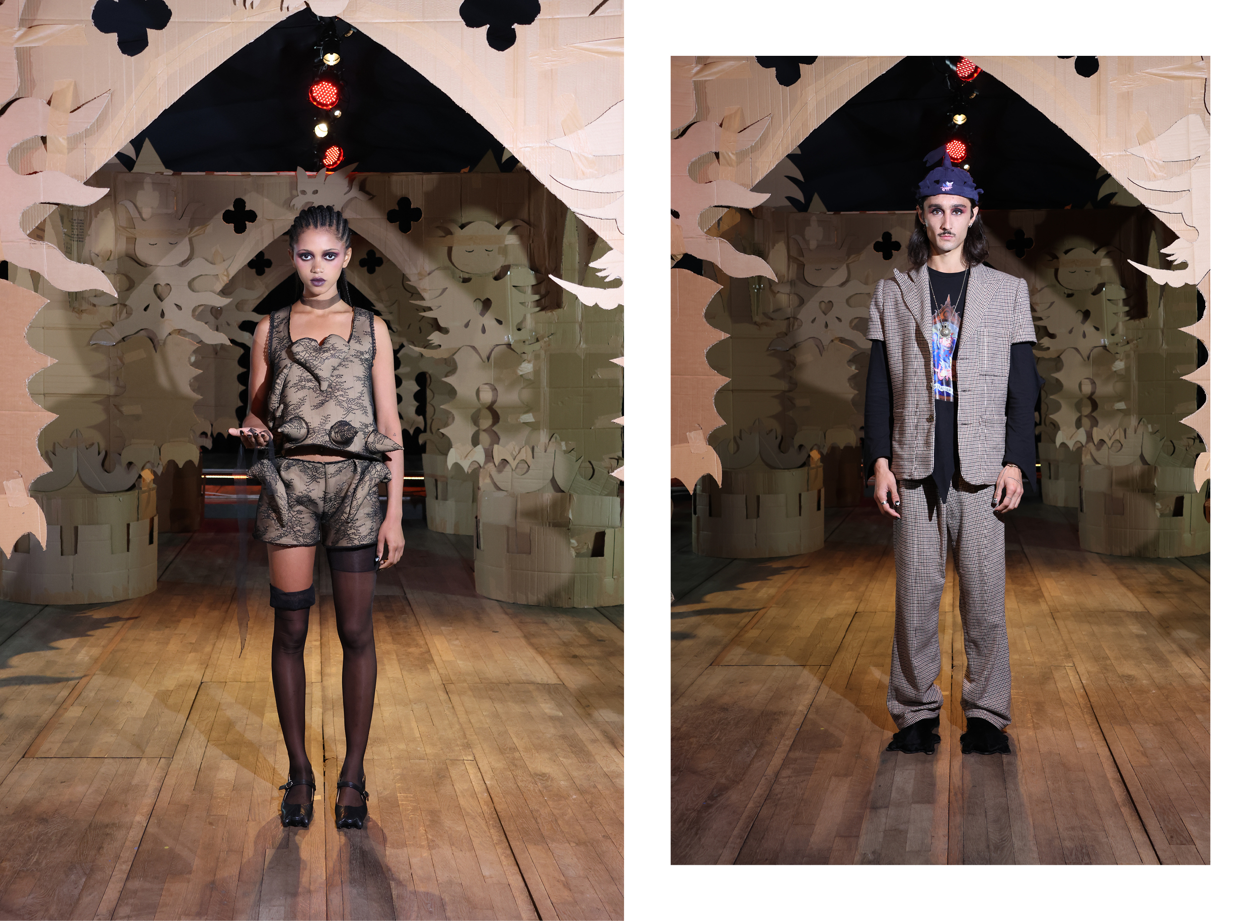 Nasce così un brand in cui i richiami al mondo dell’infanzia vengono combinati con tanti altri riferimenti, dando vita a un’estetica che i due definiscono “Post-Kawaii-Glam-Fantasy-Punk“. Sempre fuori dagli schemi, i capi di Castaneda vengono ideati da Ivo. L’ispirazione deriva spesso dalle attività che occupano il suo tempo libero: visite a castelli o musei, film e serie tv, saggi, articoli di ricerca. Altre volte, lo stimolo è meno “intellettuale” e sorge semplicemente nel tragitto da casa al lavoro.